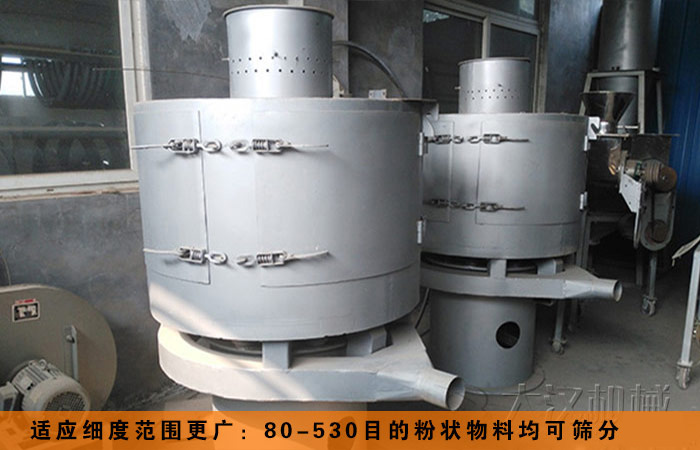 篩分精度高,產(chǎn)量大:可篩分80-600目的粉狀物料,篩分效率在95%以上,產(chǎn)量是振動(dòng)篩的5-10倍。