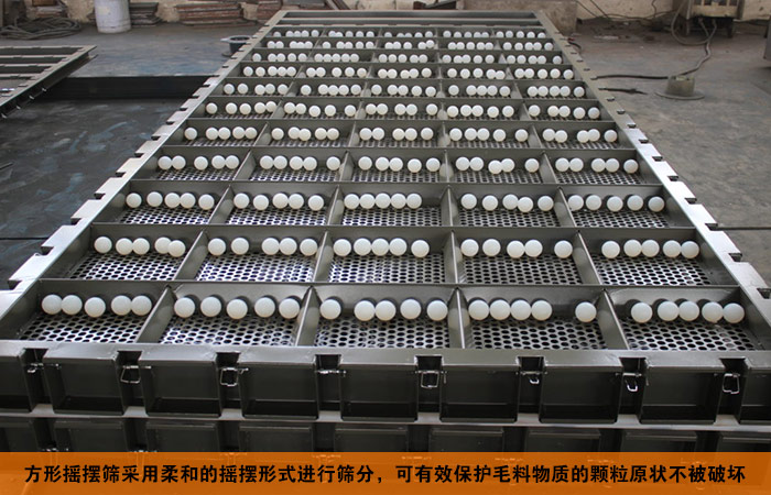 產(chǎn)品優(yōu)勢:方形搖擺篩采用柔和的搖擺形式進行篩分,可有效保護毛料物質(zhì)的顆粒原狀不被破壞,特別適用于易燃易爆易靜電的物料。