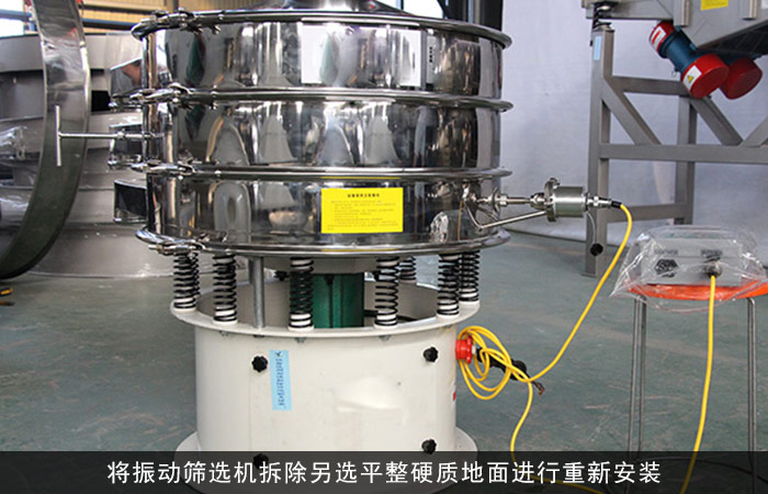 解決方法:將振動篩分機選機拆除另選平整硬質(zhì)地面進行重新安裝。