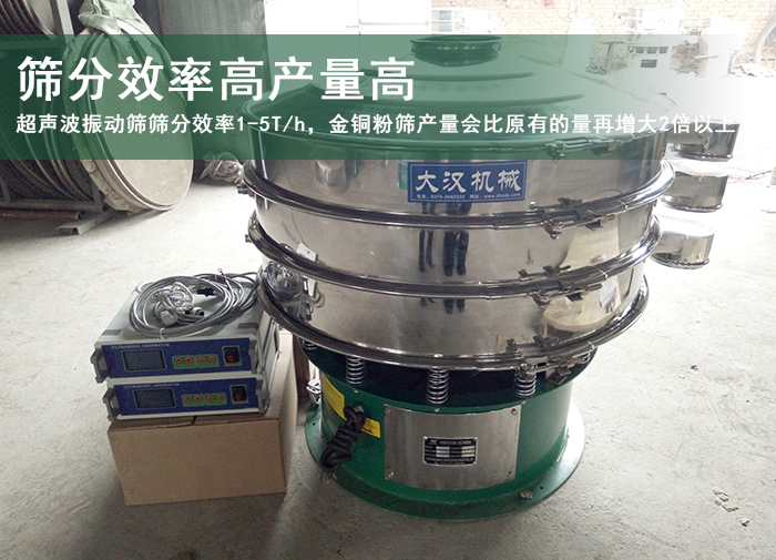 超聲波振動篩,篩網(wǎng)擁有自凈功能,超聲波裝置在篩分過程中超聲波加速度,不斷敲打、振動篩網(wǎng),使篩網(wǎng)不被金銅粉顆粒、以及堆積的金銅粉而堵塞,自凈能力強