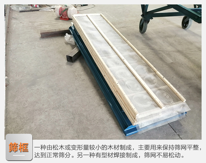 2、篩框分為二種:一種由松木或變形量較小的木材制成,主要用來保持篩網(wǎng)平整,達(dá)到正常篩分。另一種有型材焊接制成,篩網(wǎng)不易松動(dòng)。