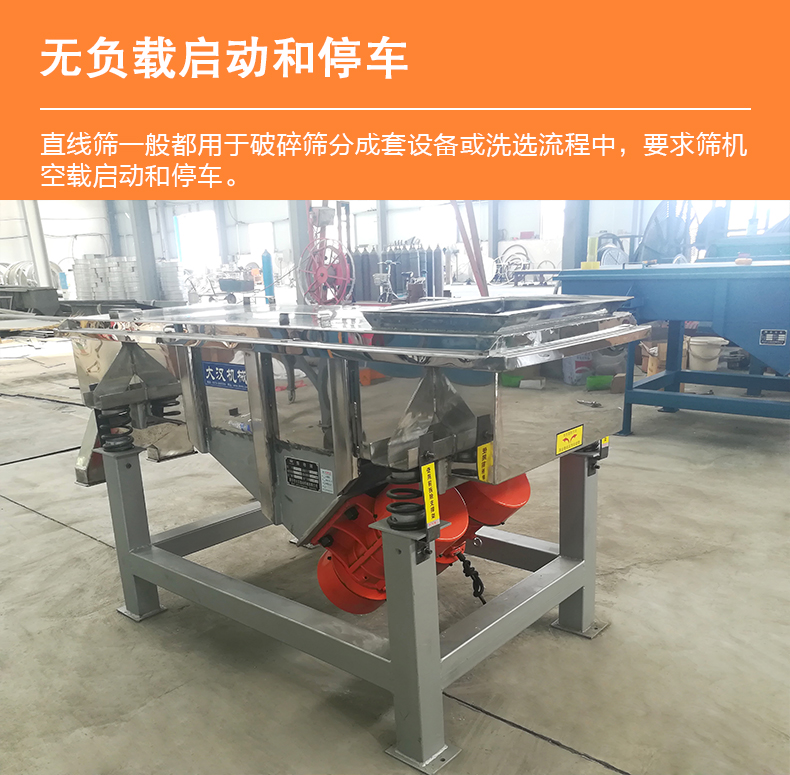 直線篩一般都用于破碎篩分成套設(shè)備或洗選流程中,要求篩機(jī)空載啟動(dòng)和停車。因此需遵守逆工藝流程啟動(dòng),順工藝流程停車的原則。除特殊原因外,不允許帶料停車。當(dāng)篩面上有積料時(shí),必須清除之,方可啟動(dòng)。運(yùn)轉(zhuǎn)正常后,方能開始給料。